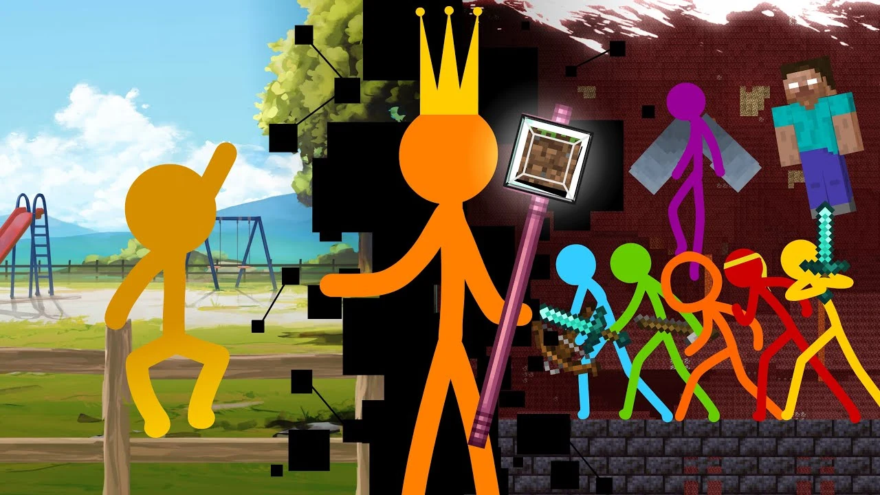 Stick figures on a computer screen find their way into the world of Minecraft.