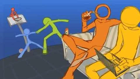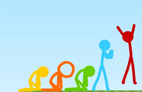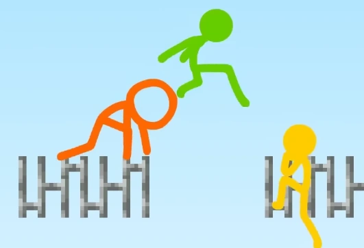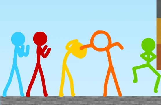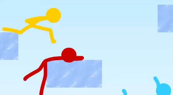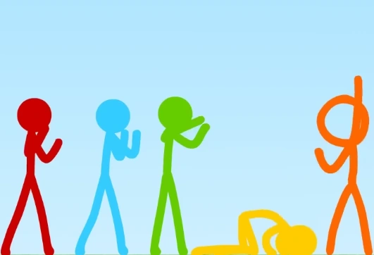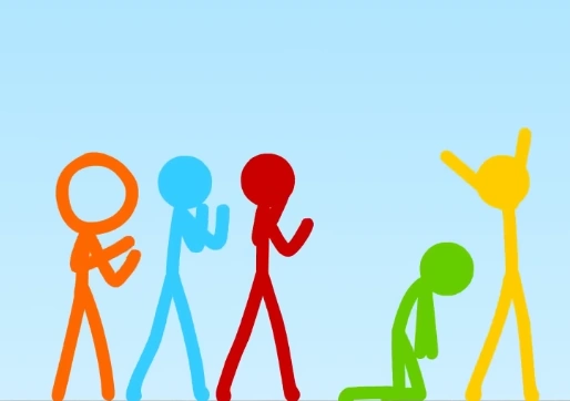 At first, the stick figures had fun, completing courses while at the same time trying to beat each other. Each time one stick figure wins until they're all tied with 2 wins.