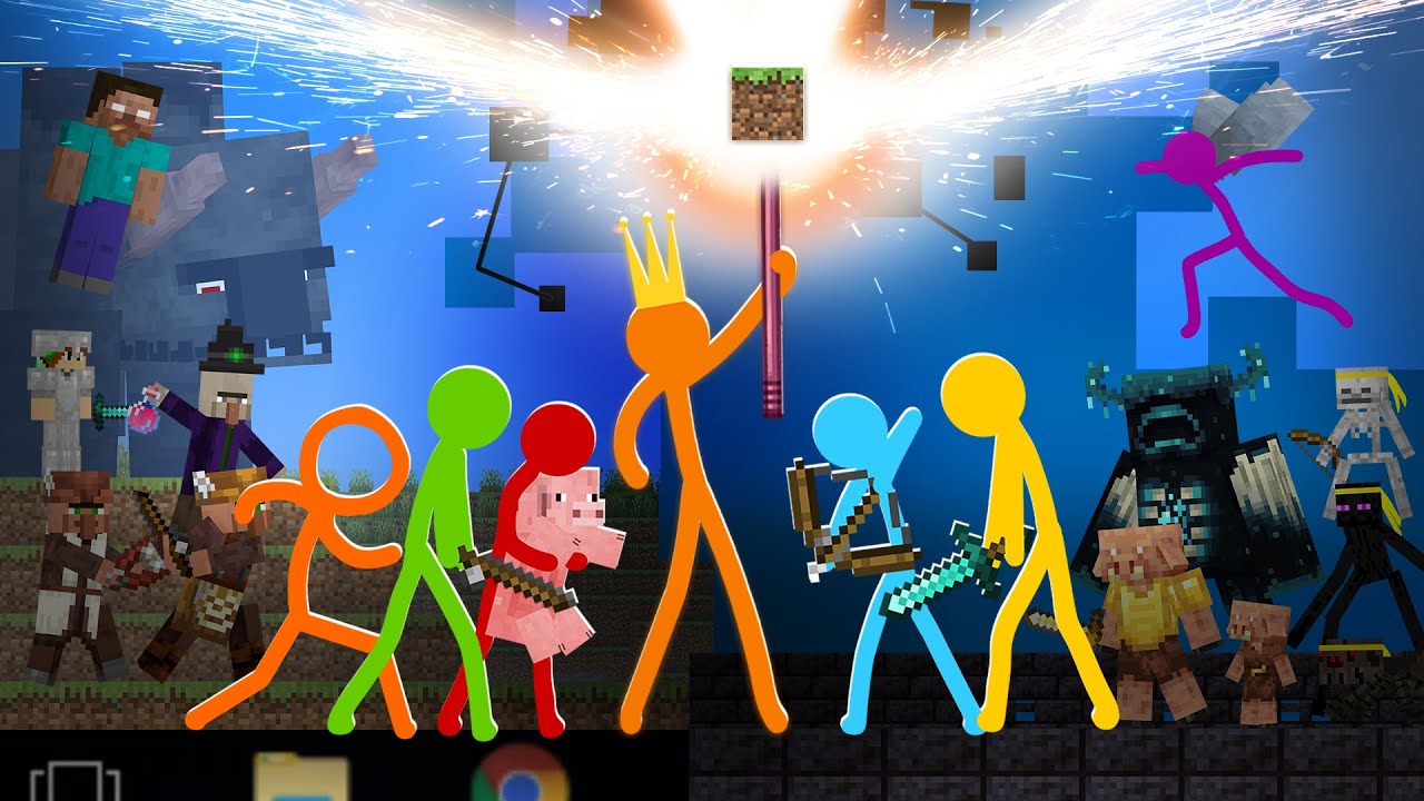Understandably confused by the presence of stick figures in Minecraft, he tries to attack the two with a bow and arrow, but Red easily catches the arrows and throws them away. The two stick figures soon realize that there's a desktop behind the player's head, represented by a projection.