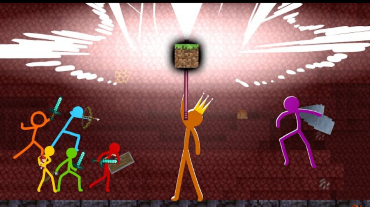 The three stick figures successfully defeat King Orange and restrain him, taking his staff; however, Purple manages to take the Minecraft Game Icon, escaping into the Nether, causing all items and blocks created by said block to vanish, including the Nether Portal, preventing The Second Coming from chasing after Purple. Red, however, manages to enter the Portal before it is destroyed.