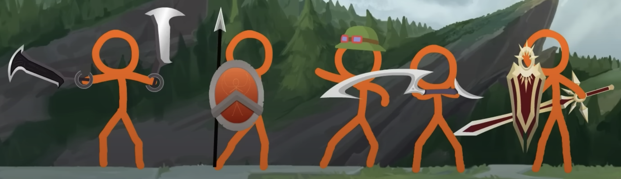 victim's clones just before they were deleted. (The stick figure holding the enormous white throwing star/shuriken is the original victim and the one in an idle state is not a clone but the source of the clones.)