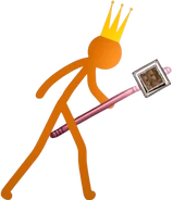 - King Orange: The eighth entity to possess it. He first took hold of Noogai3's Game Icon given to him by Purple. His plan was to steal it from ALANSPC and place it in his staff to use its power to destroy Minecraft. He used the Game Icon in his fight against The Second Coming. He created arrows, fire charges, obsidian, explosions and a black hole with the Game Icon. He lost possession of it after his and The Second Coming's Minecraft game icons touched while in the black hole, creating a huge explosion that blew the Minecraft game icon out of his staff. He retrieved it back at the end of "The Warden" and used it to overwhelm The Second Coming and the Warden in combat. Just before he could place it in his Staff, the Staff was stolen by Red's allies. He used the Game Icon to fight all of them but was overwhelmed and blasted away by Red possessing a netherite block in the Staff. He obtained the second Minecraft game icon later and fused it with the first after a battle with the Medium-sized Titan Ravager, Blue and Yellow, making it more powerful. King Orange retrieved his staff again with the Fused Minecraft game icon from Purple during the events of "The Ultimate Weapon."