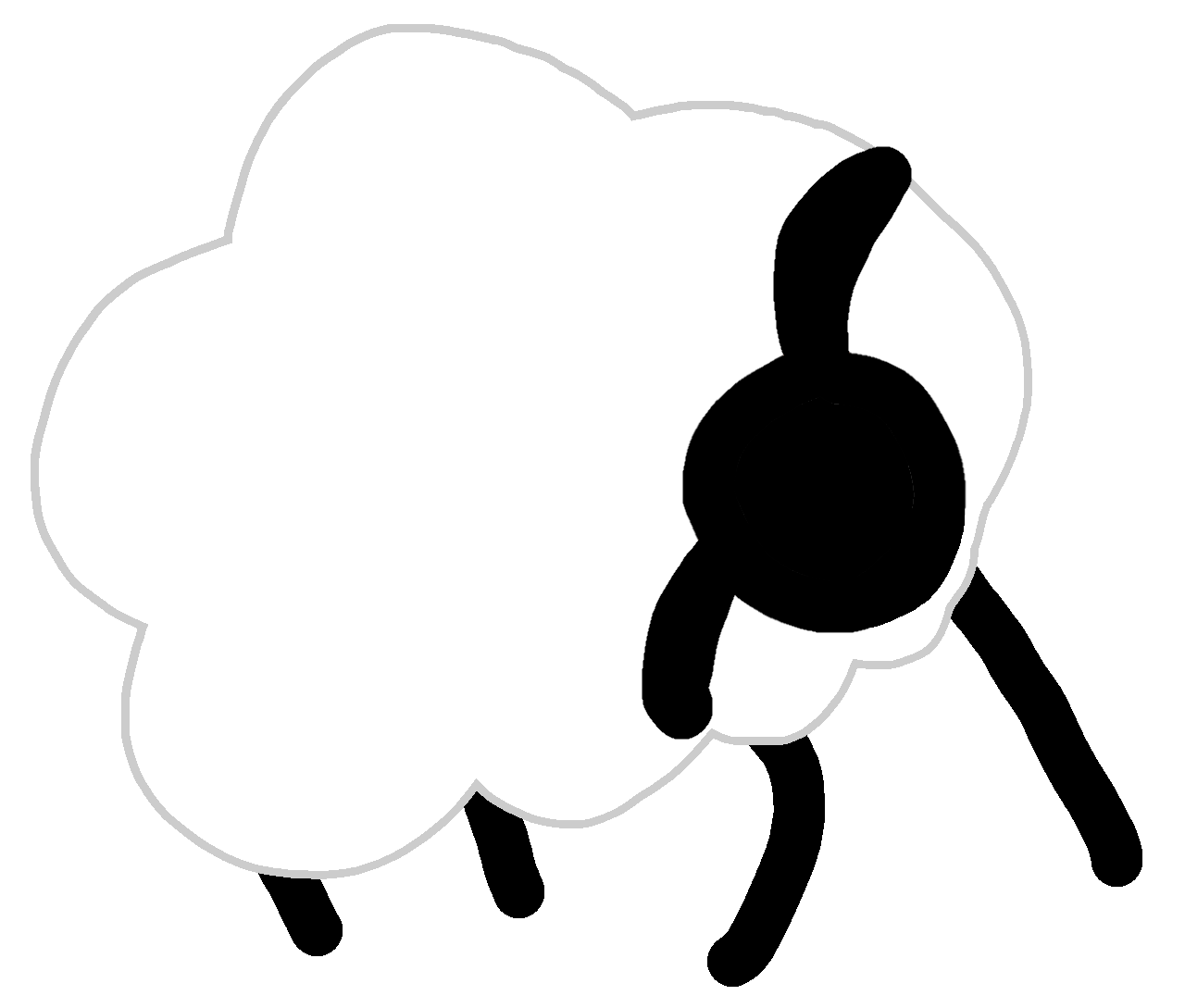 The sheep is a common conception on what a sheep looks like. A big, black sheep with flat ears and big, white, fluffy wool.