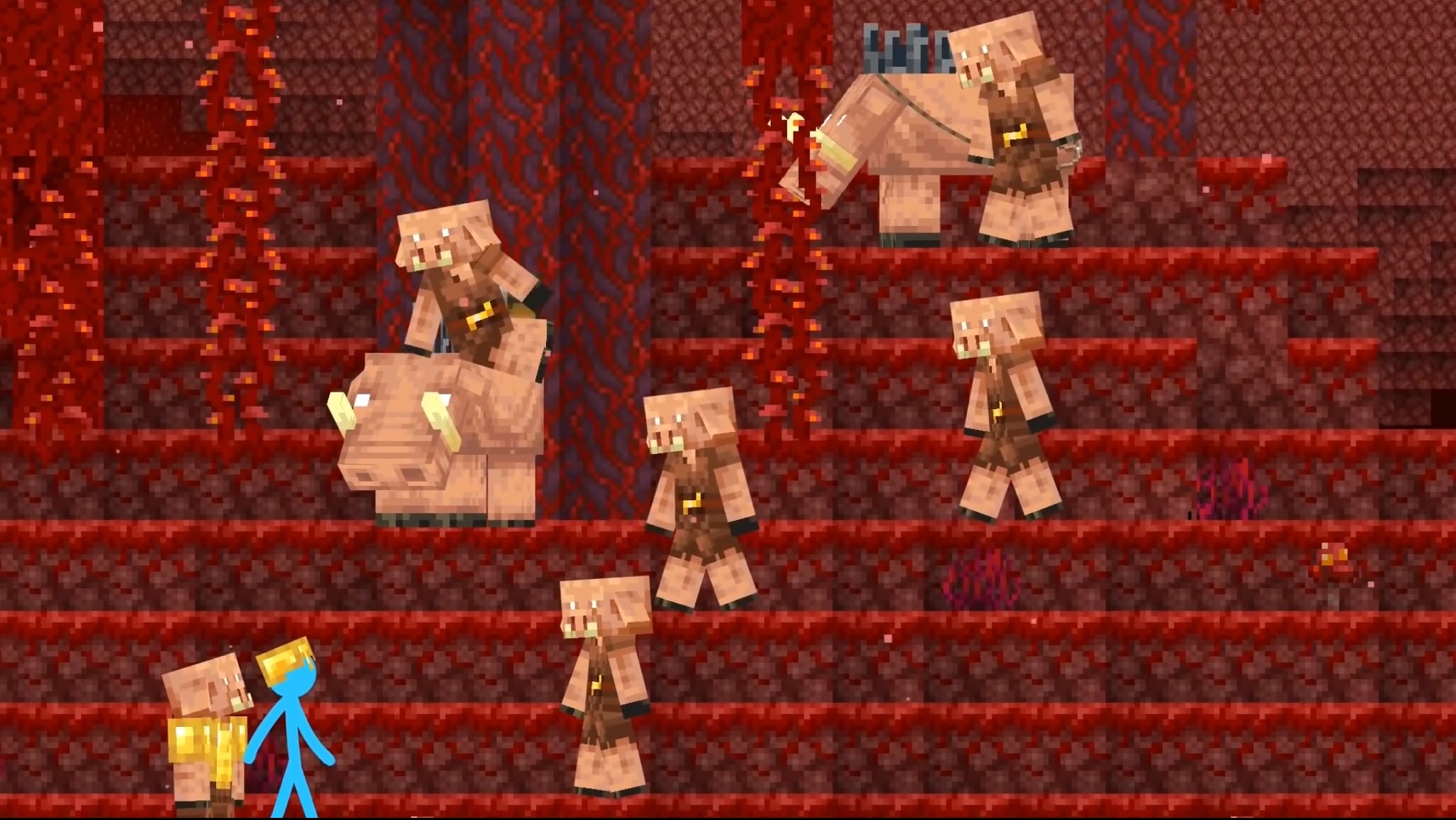 The Piglin Tribe are a tribe of humanoid pig-like mobs that first appear in The Piglin War - AVM Shorts Episode 20. They attack others on sight unless the person is wearing at least one piece of golden armor, or have gained their trust. They were friendly with Blue, but would attack him when he didn't have a golden helmet, but after Blue saved the Baby Piglin's life, the Piglin Tribe doesn't attack Blue even if he doesn't wear a golden helmet, since he has gained their trust. They are constantly at war with Zombified Piglins.