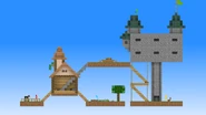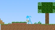 Meanwhile, The Second Coming visits sticksfight.com. He enters the room, and revisits memories of Red, Blue, Yellow, and Green, leaving The Second Coming even more lonely. Suddenly, he senses that his friends might be in danger. The Second Coming immediately draws his sword and rushes off to help its friends. As a result of the monsters and bad weather, Green, Blue, Yellow, and Red are left stranded on a dirt platform, hudled around a fire for warmth. Blue gives the only remaining food, two carrots, to Green and Red to keep them from starving. Eventually, Green suggests attempting to climb back to the portal. The others agree to this plan. As the four stick figure pillar their way up to the SkyBlock portal, The Second Coming appears in the Nether. It runs towards the portal, only to be intercepted by a Ghast. The Ghast begins to fire fireballs at The Second Coming, disabling the portal. The Second Coming continues to dodge fireballs, but is eventually forced to escape through another portals. Yellow, Green, Red, and Blue finally reach the portal. However, the portal fades just as Yellow steps into the frame, leaving the four stick figures shocked.