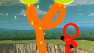 Satisfied, TDL flies back to his house. Seeing the immensely powerful being flying towards them, the Stick Gang hides in the nick of time. TDL enters and closes the portals. Thinking he is unseen, he attaches the band Red was playing with to his wrist, causing his eyes to glow and a black and red beam of energy to shoot into the sky, momentarily darkening the world. TCO recovers but sees the beam and grows uncertain. TDL, now more powerful, flies towards his opponent, eager to end the fight. TCO tries to attack but is knocked back by a flurry of kicks and punches. He attempts to use his laser, but the beam is now ineffective against TDL, who promptly knocks his head back and throws him away. TCO lands safely but is met by huge red spines, similar to the ViraBot's. He gets impaled by one but is otherwise unaffected and rips it out, using it to knock back the other spines flying towards him. TDL knocks TCO out of the water and then strikes him with multiple spines in the chest, before punching him back into the water and diving down to continue his assault. Inside the house, The Second Coming, Red, Blue and Green are panicking, seeing their savior overwhelmed by the new threat.