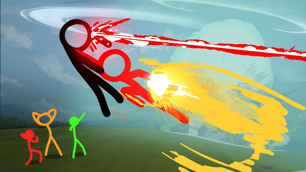 As the ViraBots pass by TSC's body, his wounds are healed and he disappears. The ViraBots nearly make it to the portals but are suddenly destroyed. TDL sees this and senses TSC appear behind him, but is too shocked to react or even turn around. He is thus punched down to the water and caught above the surface, before being punched a significant distance away. TDL manages to gather himself and summons the rest of the swarm to attack back, but TSC destroys them without even moving. TDL then punches TSC into the cliffside before making an attempt to escape. TSC quickly recovers, and telekinetically hurls a boulder across the lake at TDL. TSC then flies at TDL, kicking and punching him rapidly. TDL then sees a bright green light shine from the eyes of his opponent but is too weak to intervene. He can only watch as TSC ignites his eyes and blasts him with a beam of laser and electricity, before being dragged across the landscape. TSC increases the intensity before splitting a hill, engulfing the entire area in a massive explosion that shatters the hill and defeats TDL. With the threat now gone, TSC flies down to the computer and using his newfound power to revive the Fighting Stick Figures and the cursor, before collapsing in exhaustion. The cursor gently takes his body to the Fighting Stick Figures. TSC wakes up and is surprised by his friends still being alive. He then rubs the tears in his eyes before being enveloped in a group hug. TCO, similarly to how the Stick Gang reacted to his powers, is stunned by what he just witnessed and bows down to TSC. Unaware of what he did, TSC shrugs at his friends and TCO looks up in astonishment. The cursor then arrives to take them back home, and they hop on and wave goodbye to TCO.