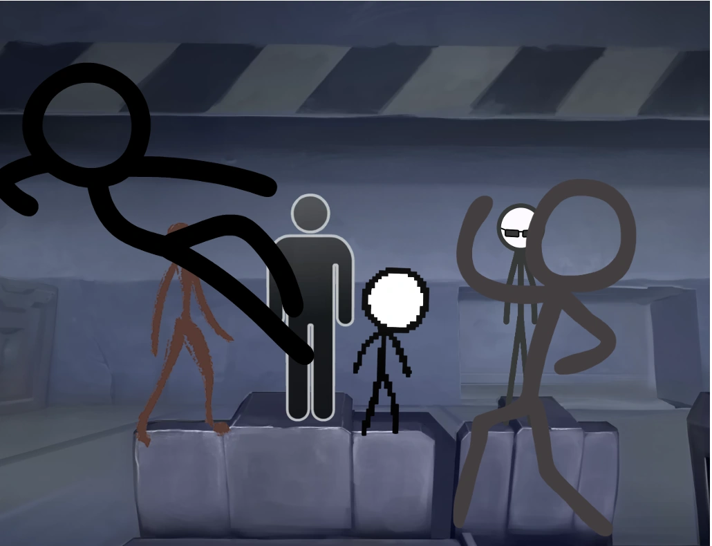 Meanwhile, Yellow, the last of the Fighting Stick Figures still at large, sneaks through the facility, hiding from workers and desperately seeking a way to free his friends. He stumbles upon the room where the confiscated drawing tools are kept and quickly crafts a plan.