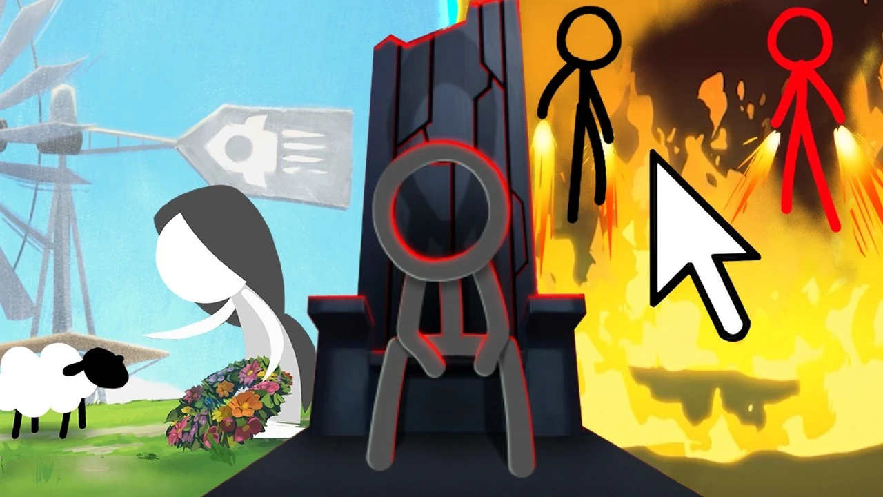 Regaining consciousness, Mitsi finds herself trapped beneath heavy debris. Agent tries desperately to reach her but is cut off by a powerful explosion, killing Mitsi. In the flaming aftermath, Agent witnesses the perpetrators of their world's destruction, a black and a red stick figure. The Dark Lord proudly watches the world of Newgrounds in flames and high-fives his companion, The Chosen One. As the two begin to target the survivors, Agent sees several animations jumping into a portal and follows suit, re-entering the Outernet.