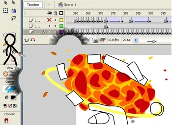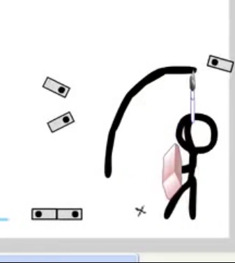 他拿了繪製直線工具和鋼筆工具,把它們接在一起,然後用它來割斷身上的套索。與此同時,動畫師畫出一把等離子槍。受害者拿下文本工具「A」,把他拉成弓。當光標完成繪製時,他向它射箭。動畫師擺脫箭,向受害者開槍,但火柴人用取色器向槍內噴墨水,槍爆炸了,同時炸壞時間軸,其中的幀開始掉落。動畫師又畫了一台炮來射擊掉下的幀,但受害者使畫了一條線擋住了幀,然後用線當弓將橡皮擦工具射向大炮,擦斷了它。