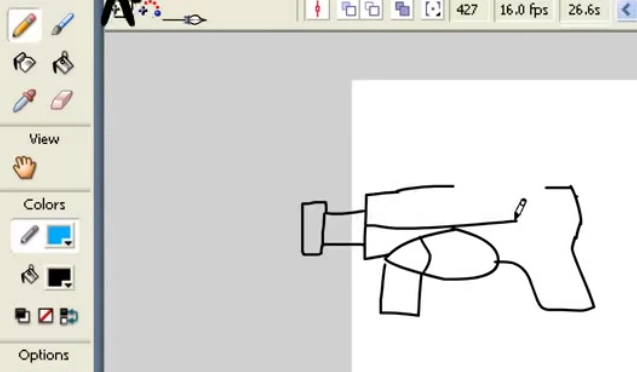 - 當動畫師繪製槍時,儘管筆觸顏色為藍色,但槍畫出來是黑色。